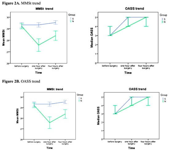 Our results have unexpectedly shown a significant increase of the average value of MMSt in the considered time frames. The OASS mean value also significantly increased in the S group until 1 h after surgery.