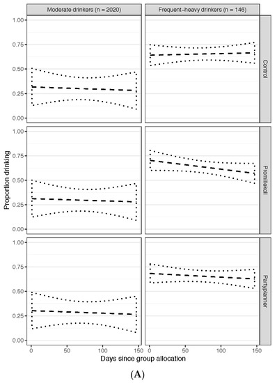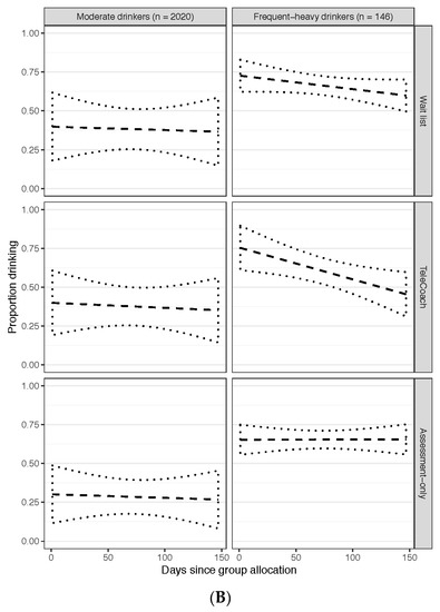- Witkiewitz, K.; Dearing, R.L.; Maisto, S.A. Alcohol use trajectories among non-treatment-seeking heavy drinkers. J. Stud. Alcohol Drugs 2014, 75, 415–422. [Google Scholar] [CrossRef]