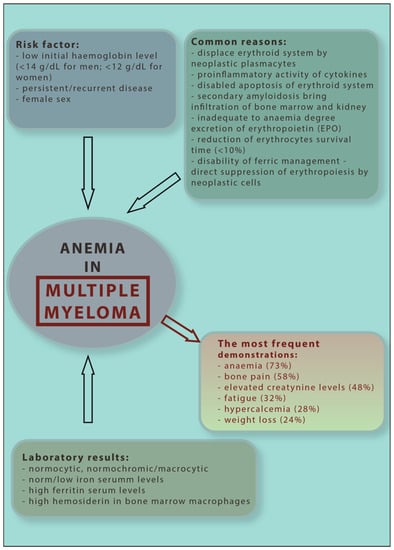 - Mittelman, M. The implications of anemia in multiple myeloma. Clin. Lymphoma 2003, 4, S23–S29. [Google Scholar] [CrossRef]