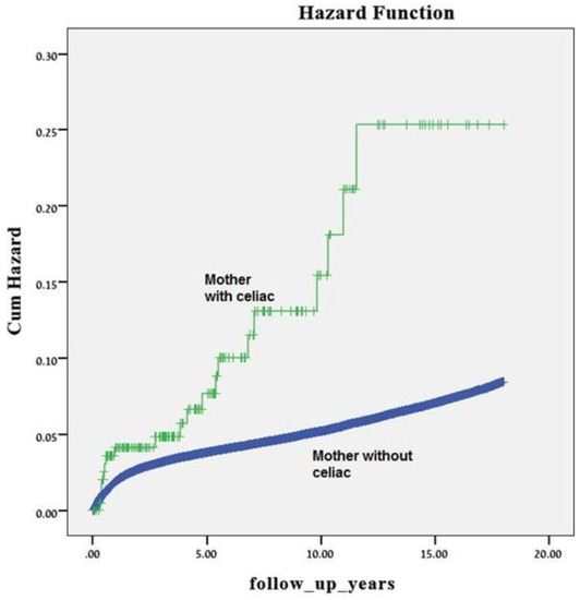 Our study also has limitations. First, our main limitation is the lack of available clinical data from the patients. We were not able to differentiate between treated mothers with celiac to those who are not treated. Details about time of diagnosis, duration of the disease, and its severity are not known. Studies showed that undiagnosed celiac disease during pregnancy increased the risk of intrauterine growth retardation and low birth weight relative to controls, whereas this risk disappeared if celiac disease was diagnosed and treated before pregnancy. As mentioned above, we demonstrated an association between women with celiac disease and low birth weight; however, information regarding the years on a gluten-free diet at pregnancy and the age of diagnosis of the maternal celiac disease are missing. Furthermore, we followed these children only up to 18 years of age. It has been suggested that there is a correlation between the duration of gluten exposure and development of an immune response to gluten in genetically susceptible individuals [14]. Therefore, the rate of gastrointestinal morbidity in offspring of mothers with celiac might be higher than we showed.