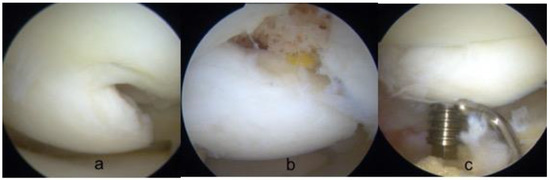 Direct fixation was performed arthroscopically, or it was a mini-open arthrotomy in those cases where the correct approach to the entire lesion was difficult and incomplete only with an arthroscopic view. The procedures were always performed under regional anesthesia and with the use of a tourniquet. Standard anteromedial and anterolateral portals were routinely used. Accessory portals were made when needed according to the site of the lesion to guarantee perpendicular fixation of the osteochondral fragments.