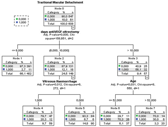 Decision-tree algorithm of the variables associated with tractional macular detachment.