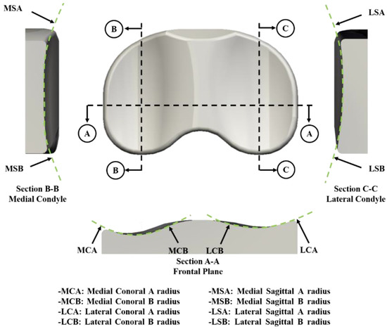 - Dargahi, J.; Najarian, S.; Amiri, S. Optimization of the geometry of total knee implant in the sagittal plane using FEA. Biomed. Mater. Eng. 2003, 13, 439–449. [Google Scholar]