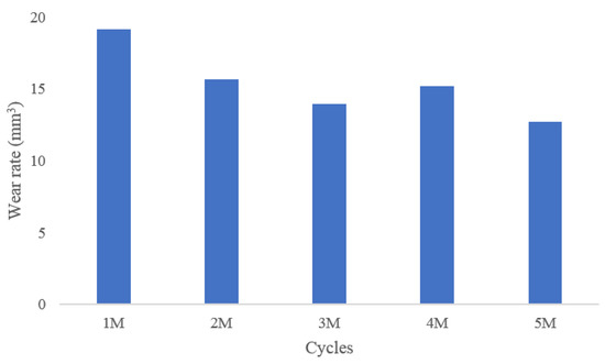 Hence, our computational model results were within the standard deviation of the experimental results. In addition, the photographs of the experimental result exhibited a significant similarity with the wear contours of our computed optimal model after 5 million cycles (Figure 9).