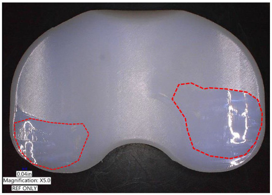 - Wimmer, M.A.; Laurent, M.P.; Haman, J.D.; Jacobs, J.J.; Galante, J.O. Surface damage versus tibial polyethylene insert conformity: A retrieval study. Clin. Orthop. Relat. Res. 2012, 470, 1814–1825. [Google Scholar] [CrossRef]