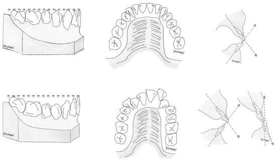 It is important to emphasize that the surgical-occlusion setup is certainly more technically demanding in cleft than non-cleft deformities due to the complex cleft-related dental abnormalities, such as irregular arch form and shape as well as teeth anomalies [11,55,56]. In the conventional orthodontics-first approach, as presurgical therapy brings maxillary and mandibular teeth into ideal relationships to the underlying skeletal bases, the surgical-occlusion setup is very close to the final occlusion, i.e., the ideal occlusion [11,12,13]. When embracing the surgery-first approach, dental alignment, arch leveling, and coordination, and incisor decompensation are deferred for postsurgical management; the surgical-occlusion setup is consequently different from the final (ideal) occlusion at the end of treatment [22,23,28]. Not only can anteroposterior dental movements be orthodontically adjusted postoperatively, but also transverse and vertical dental movements can be successfully achieved due to the increased metabolic turnover of the regional acceleratory phenomenon [36]. Surgical occlusion in surgery-first treatment was thus set as a treatable malocclusion [22,23,28]. A major concern for this setup is the accurate estimation of the required space for postsurgical dental movement with many combinations of potential directions [22,23,28]. These challenges are probably the major hampering factors for the widespread use of this technique in cleft centers globally.