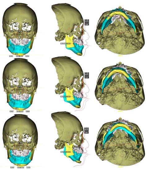 - Lin, H.H.; Chang, H.W.; Wang, C.H.; Kim, S.G.; Lo, L.J. Three-dimensional computer-assisted orthognathic surgery: Experience of 37 patients. Ann. Plast. Surg. 2015, 74, S118–S126. [Google Scholar] [CrossRef] [PubMed]