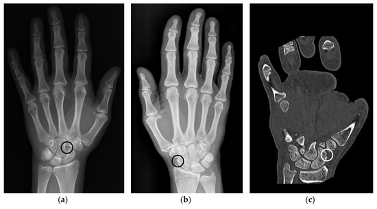 41. Wawer, R.; Budzik, J.F.; Demondion, X.; Forzy, G.; Cotten, A. Carpal pseudoerosions: A plain X-ray interpretation pitfall. Skelet. Radiol. 2014, 43, 1377–1385. [Google Scholar] [CrossRef]