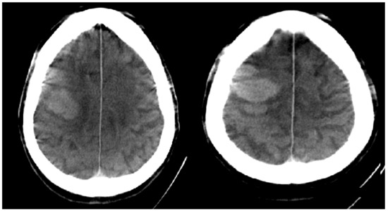 Figure 2. FDCT scan of intracranial hemorrhage which was missed by resident during off-hours.