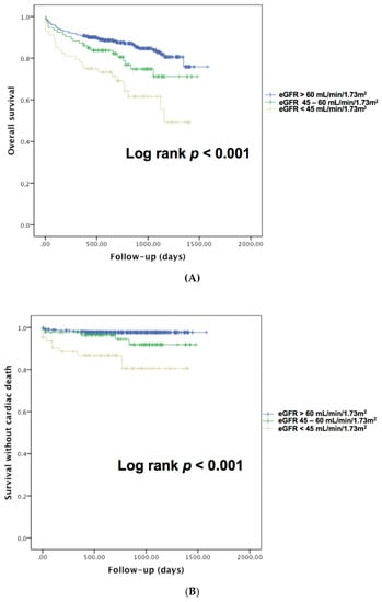 3.2. Impact of Renal Dysfunction on Overall and Cardiovascular Mortality