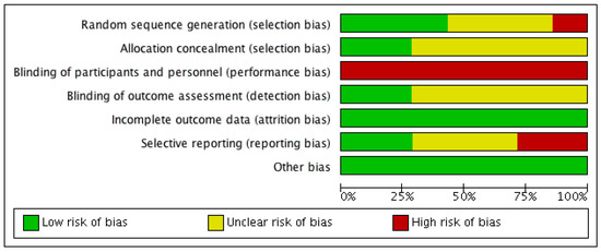 Risk of bias graph (presented as percentages across all included studies) illustrating the review authors’ judgements about each risk of bias criterion.