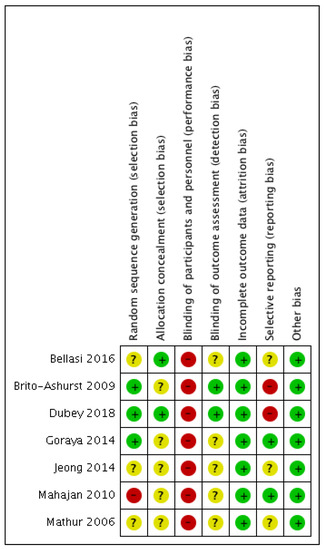 - Higgins, J.P.T.; Green, S. (Eds.) Cochrane Handbook for Systematic Reviews of Interventions; Version 5.1.0; The Cochrane Collaboration: Oxford, UK, 2011; Available online: http://handbook.cochrane.org (accessed on 2 December 2018).