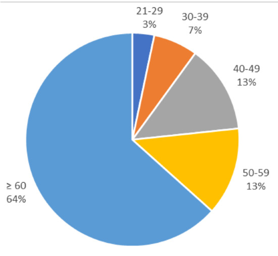 Of 30 respondents to the NATF questionnaire, 16 (53.3%) experienced PE previously, and 16 (53.3%) were female. The majority of respondents (19; 63.3%) were older than 60 years of age (Figure 2).