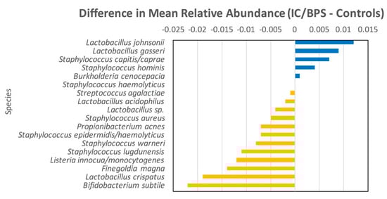 | Species unique to IC/BPS | Species unique to Controls | Species found in both: |