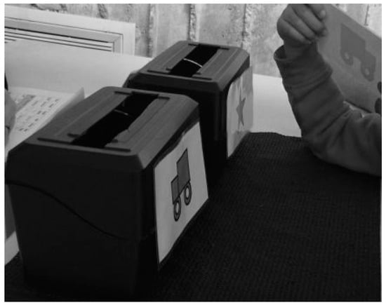 Executive Functions. In this study, participants’ executive functions were assessed by the Dimensional Change Card Sort (DCCS) Test—previously observed to be valid in the U.S. []. This test provides an index for the development of executive function among 3–5-year-olds, and it has been widely used in assessing individual differences in executive function for this population. In detail, preschoolers were instructed to place the laminated cards depicting various shapes and colors into black plastic boxes to assess their cognitive flexibility. They were then asked to follow the rules of increasing complexity to accurately place the cards, shift their responses in accordance with new rules, and inhibit responses which were no longer accurate once the rules changed. In detail, 2 target pictures were presented that varied along 2 dimensions (e.g., color, shape). Participants were asked to match a series of bivalent test pictures (e.g., red trucks, black stars) to the target pictures, first according to one dimension (e.g., shape) and then, after a number of trials, according to the other dimension (e.g., color). “Switch” trials were also used, in which the participant changed the dimension being matched. For instance, after 4 straight trials matching on shape, the participant was then asked to match on color and then go back to shape, hence requiring the cognitive flexibility to quickly choose the correct stimulus (see Figure 1). This test was individually administered in a private room and took approximately 5–10 min to complete, depending on the child’s cognitive levels. In general, children with higher cognitive levels would complete more tasks and thus spend more time in completing the test. Specifically, it would take 5 min if the participant could only complete steps 2–4 (color and shape games) in the standard DCCS test. However, it may take up to 10 min if the participant could complete steps 6–7 (border game) []. In addition, each participant was given a demonstration and practice trial for 1–2 min to make sure s/he became familiar with the testing procedures and contents. The details of the demonstration phase have been illustrated in step 2 in the instruction []. Scores of color and shape game performance were based upon participants who sorted 5 or more out of 6 trials correctly. Scores on the border game was based upon the number correct out of 12. More details of scoring can be found in Zelazo []. The internal consistency of the test was 0.75 in the present study, indicating the test had acceptable reliability among this group of children.