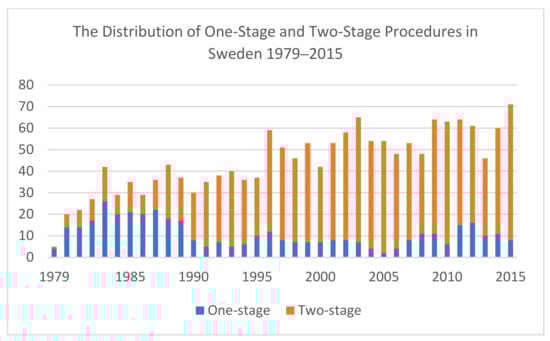 The distribution of one- and two-stage procedures in Sweden during 1979–2015.