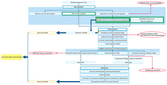 Considering that healing abutments are connected to implants in a sterilized state in conventional protocols, it is important that the provisional restorations be sterile. Our novel approach enables the screw-type provisional restoration to be in prepared in a sterilized state, since it is prepared prior to surgery. Ethylene oxide gas sterilization was selected since it does not alter material properties, as opposed to autoclave sterilization [52]. For the disinfection of the surgical guides, 0.12% chlorhexidine digluconate solution was selected, per the manufacturer’s guidelines. Surgical guides were checked for their adaptation. Since physical gypsum models were not fabricated, the guides cannot be assessed until patient visits in actual clinical situations. Hence, we evaluated the adaptation of surgical guides from a clinical perspective, using the windows on the guides and by verifying the absence of mobility.