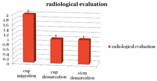With regards to the acetabular erosion (26 patients), there was a tendency to erode medially when there was an infection but there was purely superior wall erosion when there was no infection. We distinguished acetabular erosion to different groups (Group A: superior wall erosion, Group B: medial wall/superior medial wall erosion) and two causes (infection or no infection) as can be seen on Table 5. Statistical analysis showed that infection was the cause of superior acetabular wall erosion in 14.2% compared to the 66% on the group of medial wall/superior medial wall erosion (p = 0.0216).