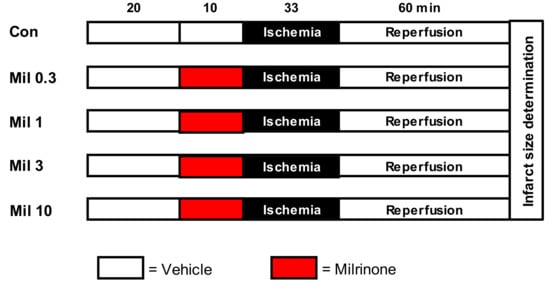 - Milrinone (Mil): Hearts were perfused with 0.3, 1, 3, and 10 µM Mil for 10 min before ischemia.