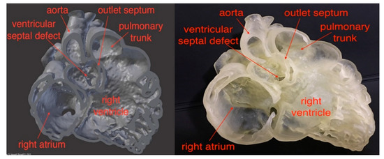 Comparison of virtual 3D reconstruction model (left) and 3D printed heart model (right). Reprinted with permission under the open access from Lau et al. [16].