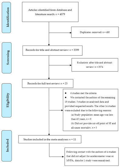 - Chau, J.Y.; Grunseit, A.C.; Chey, T.; Stamatakis, E.; Brown, W.J.; Matthews, C.E.; Bauman, A.E.; van der Ploeg, H.P. Daily sitting time and all-cause mortality: A meta-analysis. PloS ONE 2013, 8, e80000. [Google Scholar] [CrossRef] [PubMed]