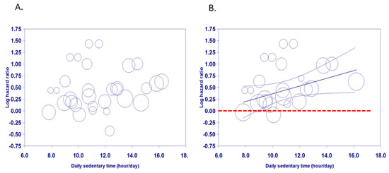 3.2. Sedentary Time and Mortality: Dose-Response Meta-Regression
