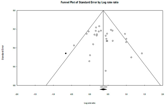 - Egger, M.; Smith, G.D.; Schneider, M.; Minder, C. Bias in meta-analysis detected by a simple, graphical test. BMJ 1997, 315, 629–634. [Google Scholar] [CrossRef]