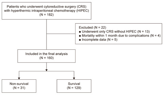 Kim, N.Y.; Chun, D.-H.; Kim, S.Y.; Kim, N.K.; Baik, S.H.; Hong, J.H.; Kim, K.S.; Shin, C.-s. Prognostic Value of Systemic Inflammatory Indices, NLR, PLR, and MPV, for Predicting 1-Year Survival of Patients Undergoing Cytoreductive Surgery with HIPEC. J. Clin. Med. 2019, 8, 589. https://doi.org/10.3390/jcm8050589