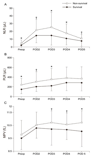 Kim NY, Chun D-H, Kim SY, Kim NK, Baik SH, Hong JH, Kim KS, Shin C-s. Prognostic Value of Systemic Inflammatory Indices, NLR, PLR, and MPV, for Predicting 1-Year Survival of Patients Undergoing Cytoreductive Surgery with HIPEC. Journal of Clinical Medicine. 2019; 8(5):589. https://doi.org/10.3390/jcm8050589