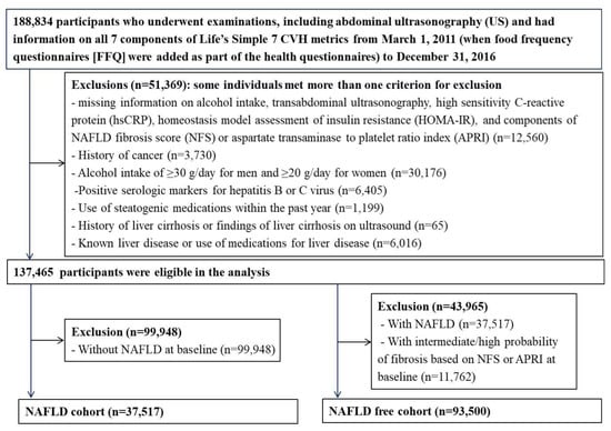 - Wang, L.; Li, M.; Zhao, Z.; Xu, M.; Lu, J.; Wang, T.; Chen, Y.; Wang, S.; Dai, M.; Hou, Y.; et al. Ideal cardiovascular health is inversely associated with non-alcoholic fatty liver disease: A prospective analysis. Am. J. Med. 2018, 131, 1515.e1–1515.e10. [Google Scholar] [CrossRef] [PubMed]