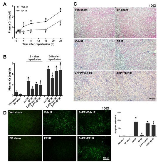 3.1. EP Protects the Renal Function and Structure against Renal IR Injury through HO-1