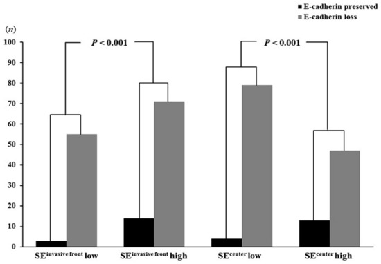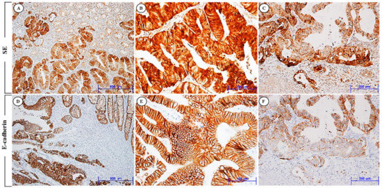 3.1. Association of SE and E-Cadherin Expression Status with Clinicopathologic Characteristics