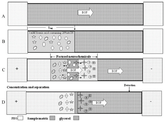 - Hsieh, M.-M.; Lin, E.-P.; Huang, S.-W. On-line concentration and separation of cationic and anionic neurochemicals by capillary electrophoresis with UV absorption detection. Talanta 2012, 88, 638–645. [Google Scholar] [CrossRef] [PubMed]