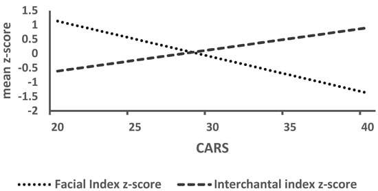 Estimated Facial and Interchantal index z scores related to Cars score.