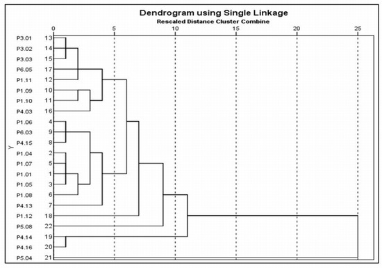 Dendrogram clustering analysis using “Single Linkage” method of the study means, and study SDs among 21 included studies in the subgroup meta-analyses.