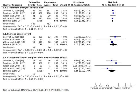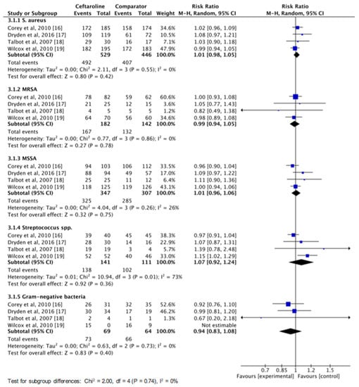 Chicago/Turabian StyleLan, Shao-Huan, Shen-Peng Chang, Chih-Cheng Lai, Li-Chin Lu, and Chien-Ming Chao. 2019. "Ceftaroline Efficacy and Safety in Treatment of Complicated Skin and Soft Tissue Infection: A Systemic Review and Meta-Analysis of Randomized Controlled Trials" Journal of Clinical Medicine 8, no. 6: 776. https://doi.org/10.3390/jcm8060776