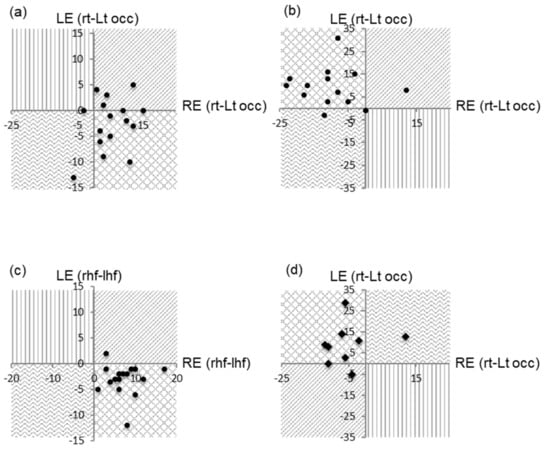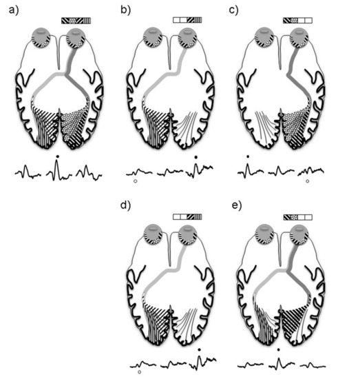 - Kuroiwa, Y.; Celesia, G.G.; Tohgi, H. Amplitude difference between pattern-evoked potentials after left and right hemifield stimulation in normal subjects. Neurology 1987, 37, 795–799. [Google Scholar] [CrossRef]