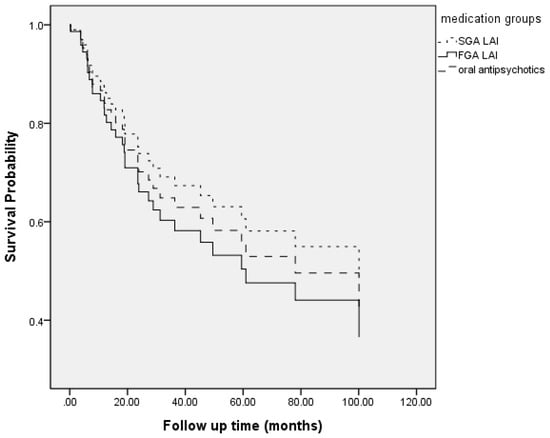 Follow-up time to psychiatric rehospitalization. (FGA LAI: first generation antipsychotics long acting injection; SGA LAI: second generation antipsychotics long acting injection.).