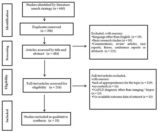 Conference abstracts, theses, case reports, reviews, commentaries and editorials were excluded from the study. Studies with duplicate or overlapping protocols or research questions were excluded. Additional objectives of exclusion criteria were: (1) basic research studies; (2) studies where NAFLD diagnosis was only based on abnormal serum levels of liver enzymes; (3) studies without available outcome data of interest; and (4) studies lacking appropriateness for the topic.