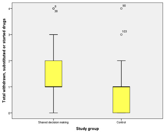 | Medications withdrawn | Intervention n = 57 | Control n = 65 | Means difference (CI 95%) | p |