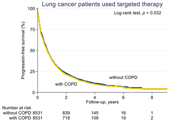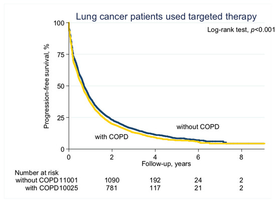 Progression-free survival curve of COPD and non-COPD cohorts (after PS matching).