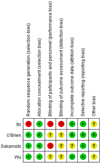 - Egger, M.; Smith, G.D.; Schneider, M.; Minder, C. Bias in meta-analysis detected by a simple, graphical test. BMJ 1997, 315, 629–634. [Google Scholar] [CrossRef]