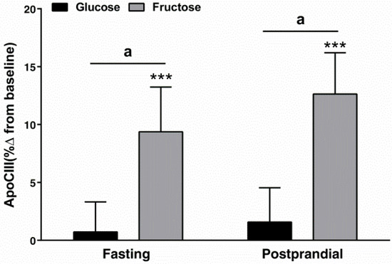 Hieronimus, B.; Griffen, S.C.; Keim, N.L.; Bremer, A.A.; Berglund, L.; Nakajima, K.; Havel, P.J.; Stanhope, K.L. Effects of Fructose or Glucose on Circulating ApoCIII and Triglyceride and Cholesterol Content of Lipoprotein Subfractions in Humans. J. Clin. Med. 2019, 8, 913. https://doi.org/10.3390/jcm8070913