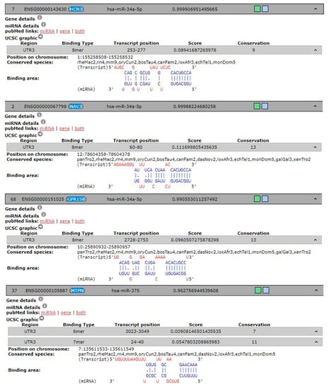 Moreover, in a clinical study, Andersen and colleagues [25] described an increased expression of has-miR-34a-5p in patients with migraine attacks, while Chen et al. [26] reported that hsa-miR-375 plays pivotal roles in cancer, metabolic, immune disease and inflammatory diseases.