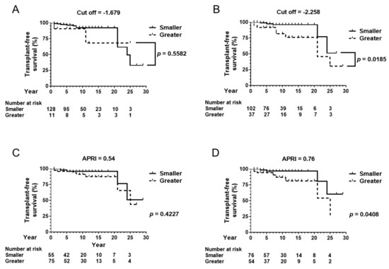 3.6. Prediction of Transplant-Free Survival by APRI