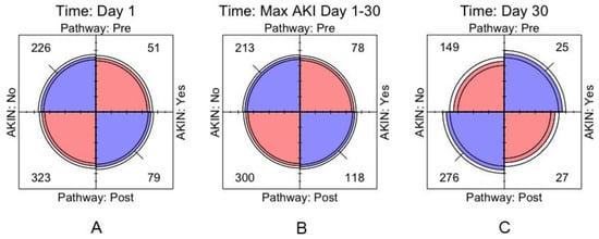 In a comparison of KDIGO AKI subgroups, again no significant difference was found on either day 1 (p = 0.5321) or day 30 (p = 0.1516) using crude data.
