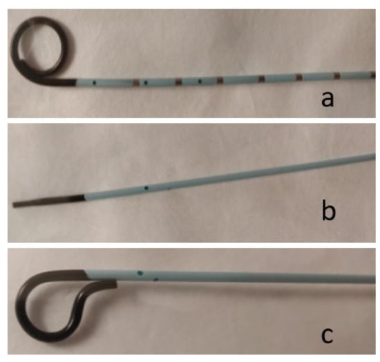 - Flacke CWBaS. Diagnostic Catheters and Guidewires. In Image-Guided Interventions, 2nd ed.; Mauro, M.A., Ed.; Saunders/Elsevier: Philadelphia, PA, USA, 2014; pp. e15–e23. [Google Scholar]