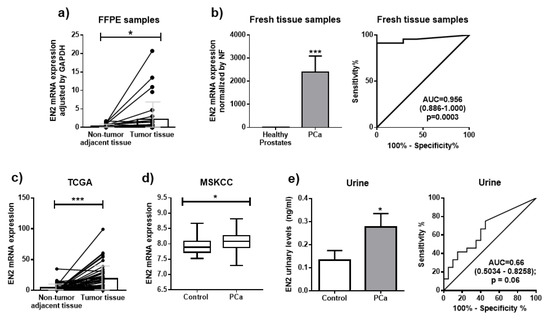3.1. EN2 Is Overexpressed in Tissue and Urine Samples from PCa Patients Compared with Controls