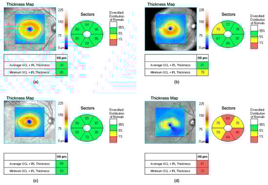- El-Fayoumi, D.; Badr Eldine, N.M.; Esmael, A.F.; Ghalwash, D.; Soliman, H.M. Retinal nerve fiber layer and ganglion cell complex thicknesses are reduced in children with type 1 diabetes with no evidence of vascular retinopathy. Investig. Ophthalmol. Vis. Sci. 2016, 57, 5355–5360. [Google Scholar] [CrossRef] [PubMed]
