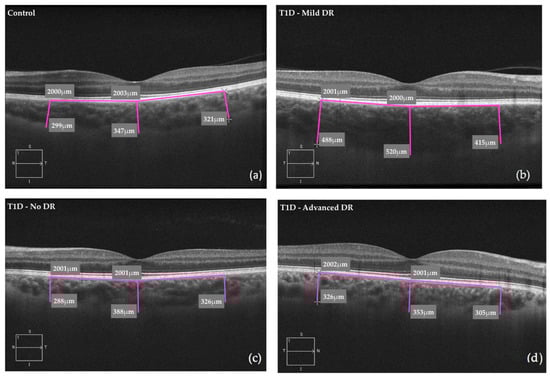 - Elhabashy, S.A.; Elbarbary, N.S.; Nageb, K.M.; Mohammed, M.M. Can optical coherence tomography predict early retinal microvascular pathology in type 1 diabetic adolescents without minimal diabetic retinopathy? A single-centre study. J. Pediatr. Endocrinol. Metab. 2015, 28, 139–146. [Google Scholar] [CrossRef] [PubMed]